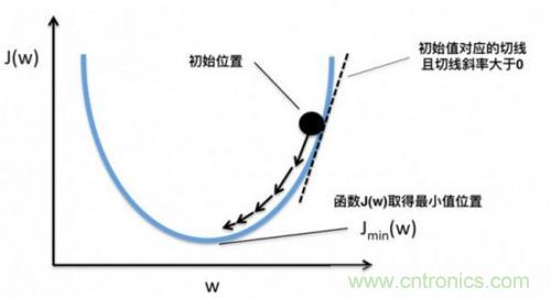 根據(jù)導(dǎo)數(shù)判斷損失函數(shù)f在x0點(diǎn)上應(yīng)當(dāng)如何移動(dòng),才能使得f最快到達(dá)最小值的方法,我們稱為梯度下降。梯度也就是導(dǎo)數(shù),沿著負(fù)梯度的方向,按照梯度值控制移動(dòng)步長(zhǎng),就能快速到達(dá)最小值。當(dāng)然,實(shí)際上我們未必能找到最小點(diǎn),特別是本身存在多個(gè)最小點(diǎn)時(shí),但如果這個(gè)值本身也足夠小,我們也是可以接受的,如下圖所示:
