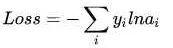 然而實(shí)際上x對(duì)應(yīng)的概率其實(shí)是第一類,比如[1,0,0],現(xiàn)在拿到的概率(或者可稱為似然)是[0.88、0.12、0]。那么它們之間究竟有多大的差距呢?這個(gè)差距就是損失值loss。如何獲取到損失值呢?在softmax里我們用互熵?fù)p失函數(shù)計(jì)算量最小(方便求導(dǎo)),如下所示: