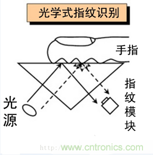 光學傳感器的發(fā)展歷史可能是最久的了,已經有30年的歷史了。實現的原理也是最簡單的。 它主要是利用光的折攝和反射原理,將手指放在光學鏡片上,手指在內置光源照射下,光從底部射向三棱鏡,并經棱鏡射出,射出的光線在手指表面指紋凹凸不平的線紋上折射的角度及反射回去的光線明暗就會不一樣。用棱鏡將其投射在電荷耦合器件上CMOS或者CCD上,進而形成脊線(指紋圖像中具有一定寬度和走向的紋線)呈黑色、谷線(紋線之間的凹陷部分)呈白色的數字化的、可被指紋設備算法處理的多灰度指紋圖像。