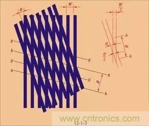 將主光柵與標尺光柵重疊放置,兩者之間保持很小的間隙,并使兩塊光柵的刻線之間有一個微小的夾角θ,如圖所示。