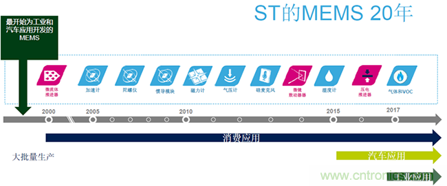 在過(guò)去的20年,消費(fèi)類(lèi)應(yīng)用使不同類(lèi)別的MEMS傳感器實(shí)現(xiàn)了從雛形,到大批量生產(chǎn)、直至大批量應(yīng)用的過(guò)程,這些傳感器包括加速計(jì)、陀螺儀、慣導(dǎo)模塊、磁力計(jì)、氣壓計(jì)、溫度計(jì)、氣體壓力計(jì)、以及最近幾年越來(lái)越多的環(huán)境類(lèi)傳感器。