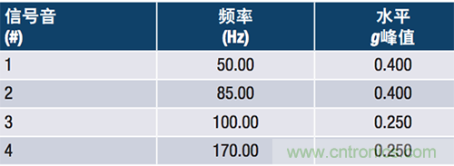在振動測試儀上重建了一個實際場景,例如在基于振動的狀態(tài)監(jiān)控中所述的場景,以便利用已知激勵信號比較器件。本例展示了一臺以5100 rpm (85 Hz)運(yùn)轉(zhuǎn)的汽輪機(jī)和一臺未對準(zhǔn)的3000rpm (50 Hz)同步發(fā)電機(jī)的振動水平。該場景說明的是采用隨機(jī)振動測試模式時,振動系統(tǒng)經(jīng)編程所產(chǎn)生的頻率和振幅。表1列出了兩個器件在目標(biāo)頻率的振幅測量結(jié)果。