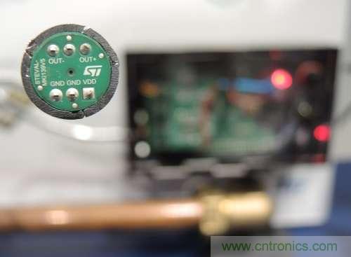 意法半導(dǎo)體(STMicroelectronics;ST)展示了一種能夠拾取20Hz至80KHz訊號的MEMS麥克風(fēng),可深層監(jiān)聽超音波頻譜,以檢測建筑物中的管線泄漏等故障情況。如同在Sensor Expo展場的其他傳感器一樣,這款低于1美元的組件目的在于將數(shù)據(jù)串流傳輸?shù)綀?zhí)行嵌入式分析的微控制器(MCU)。