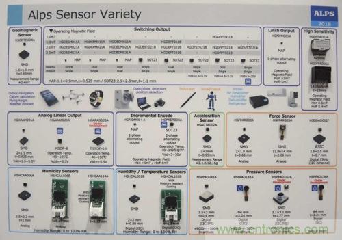 日本阿爾卑斯電氣株式會社(Alps Electric)展示其傳感器組合(下圖),這同時也可作為傳感器領(lǐng)域應(yīng)用多樣化的一個指標(biāo)。該公司并未在活動中發(fā)表新芯片,而是與網(wǎng)關(guān)供貨商、美國云端運(yùn)算軟件供貨商Mode連手展示使用其模塊開發(fā)的端對端物聯(lián)網(wǎng)解決方案。