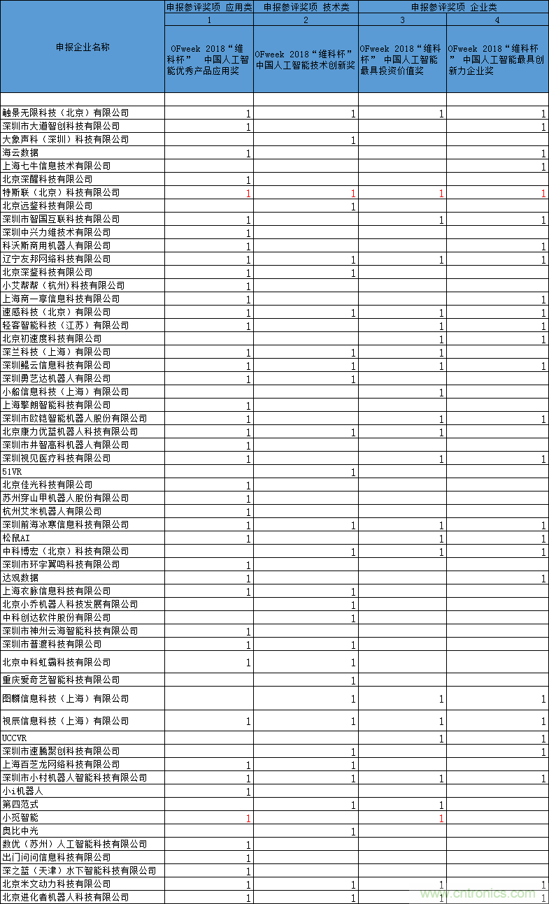 本次評選是2018年度唯一一項由權(quán)威行業(yè)門戶舉辦的重大賽事,全程免費,活動費用由評選組委會承擔(dān),企業(yè)無須支付任何參評或獎項費用;評委團由各大投資機構(gòu)、協(xié)會、院校、孵化平臺以及著名投資人組成,嚴(yán)格把關(guān);獎項覆蓋全人工智能產(chǎn)業(yè)鏈結(jié)構(gòu),設(shè)立4大獎項讓所有人工智能企業(yè)都有機會競逐獎項;并且參評企業(yè)還可以免費參與同期OFweek舉辦的中國人工智能大會,與資深專家和行業(yè)大咖面對面,學(xué)習(xí)最前沿、最熱門實用的市場趨勢及技術(shù)應(yīng)用。