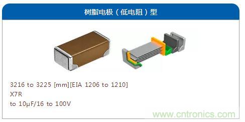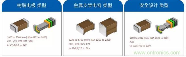 希望降低基板彎曲、掉落沖擊以及熱沖擊等機(jī)械壓力導(dǎo)致的風(fēng)險(xiǎn)時(shí),推薦使用在端子電極上嵌有具備柔性的樹(shù)脂層以及金屬框架的"冗長(zhǎng)設(shè)計(jì)類(lèi)型"結(jié)構(gòu)。