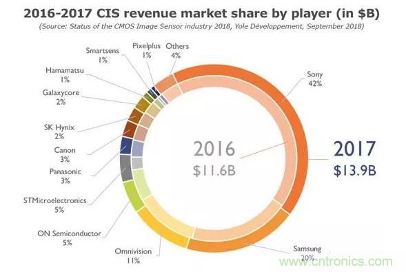 傳感器(CIS)已成為半導(dǎo)體產(chǎn)業(yè)的關(guān)鍵器件。這不僅是因為所涉及的技術(shù)及其帶來的市場營收,而是因為現(xiàn)在已經(jīng)無法想象智能手機、汽車甚至是房屋如果沒有攝像頭的支持會怎樣。根據(jù)Yole最新發(fā)布的《CMOS圖像傳感器產(chǎn)業(yè)現(xiàn)狀-2018版》報告,2017年CIS產(chǎn)業(yè)的市場規(guī)模達到了139億美元,預(yù)計未來5年的復(fù)合年增長率(CAGR)將達到9.4%。