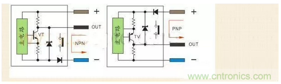 PNP型當傳感器有檢測信號VT導通,正極的電流流向輸出端OUT,輸出端OUT電位接近正極,通常說的低電平翻轉(zhuǎn)成高電平。