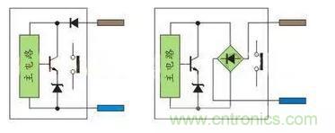 直流兩線制接近開關(guān)分二極管極性保護與橋整流極性保護,前者在接PLC時需要注意極性,后者就不需要注意極性。有源舌簧磁性開關(guān)主要用在汽缸上做位置檢測,由于需要信號指示,內(nèi)部有雙向二極管回路,因此也不需要注意極性;交流兩線制接近開關(guān)就不需要注意極性。如圖10: