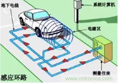 目前,道路檢測(cè)交通流狀態(tài)用的最多的傳感器件是環(huán)形線(xiàn)圈,它可以檢測(cè)交通量、車(chē)速、占有率、車(chē)頭時(shí)距、車(chē)長(zhǎng)、長(zhǎng)車(chē)比和車(chē)輛存在等多個(gè)項(xiàng)目。環(huán)形線(xiàn)圈檢測(cè)原理如圖所示。線(xiàn)圈由專(zhuān)用電纜繞幾匝(一般為4匝)及其饋線(xiàn)構(gòu)成,它通過(guò)一個(gè)變壓器接到被恒流源支持的調(diào)諧回路,有源環(huán)形線(xiàn)圈構(gòu)成LC調(diào)諧回路的電感部分,并在線(xiàn)圈周?chē)目臻g產(chǎn)生電磁場(chǎng)。當(dāng)含有鐵金屬的車(chē)體進(jìn)入線(xiàn)圈磁場(chǎng)范圍,車(chē)輛鐵構(gòu)件內(nèi)產(chǎn)生自成閉回路的感應(yīng)電渦流,此渦流又產(chǎn)生與原有磁場(chǎng)方向相反的新磁場(chǎng),導(dǎo)致線(xiàn)圈的總電感變小,引起調(diào)諧頻率偏離原有數(shù)值,從而發(fā)出車(chē)輛通過(guò)或存在的信號(hào)。