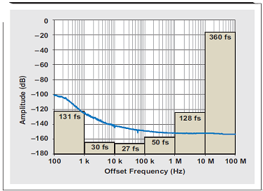 圖 6 每十倍頻計(jì)算得到的時(shí)鐘相位噪聲抖動(dòng)影響